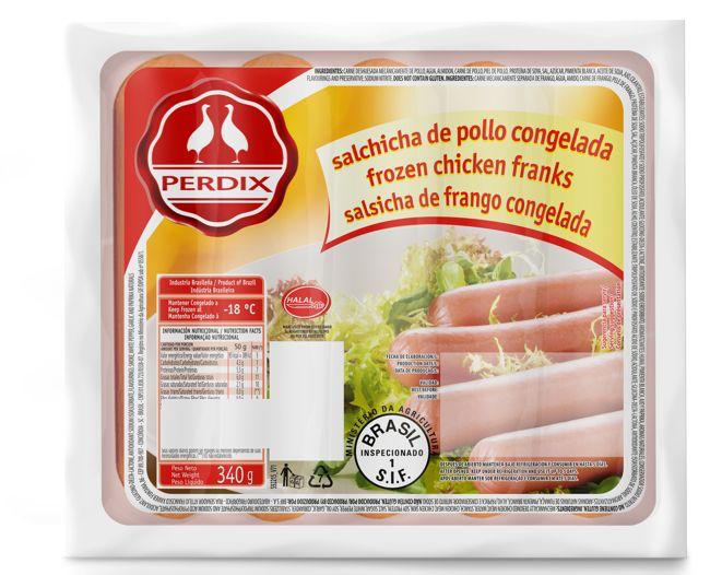 Salchichas de Pollo Congeladas, Caja 8.16 Kg x 24 Paquetes 10 Uds, 340 g